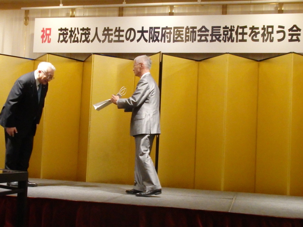 同門会秋期研修会後、茂松茂人先生の大阪府医師会長就任を祝う会を開きました。